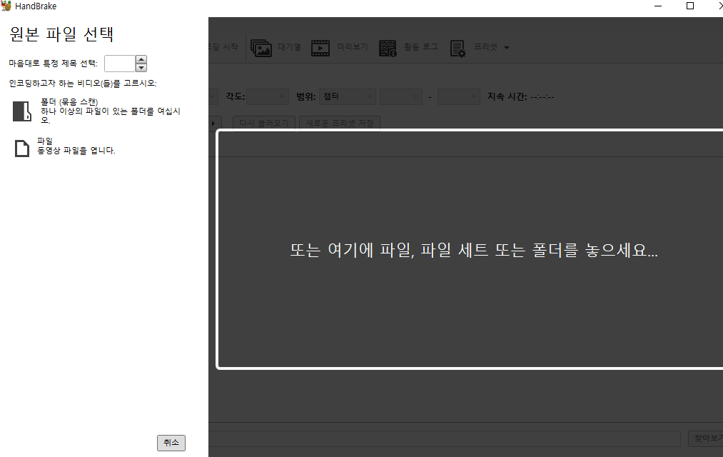 뜰텐데 설치하시고 handbrake 실행하시면
