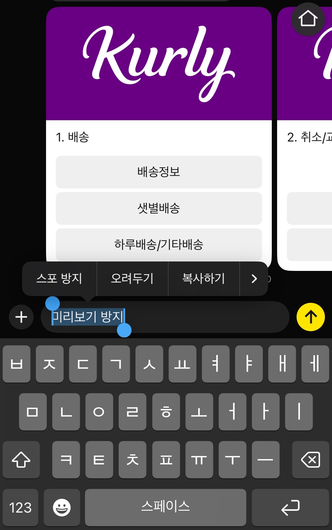 다음과 같이 스포방지 메뉴가 나타납니다